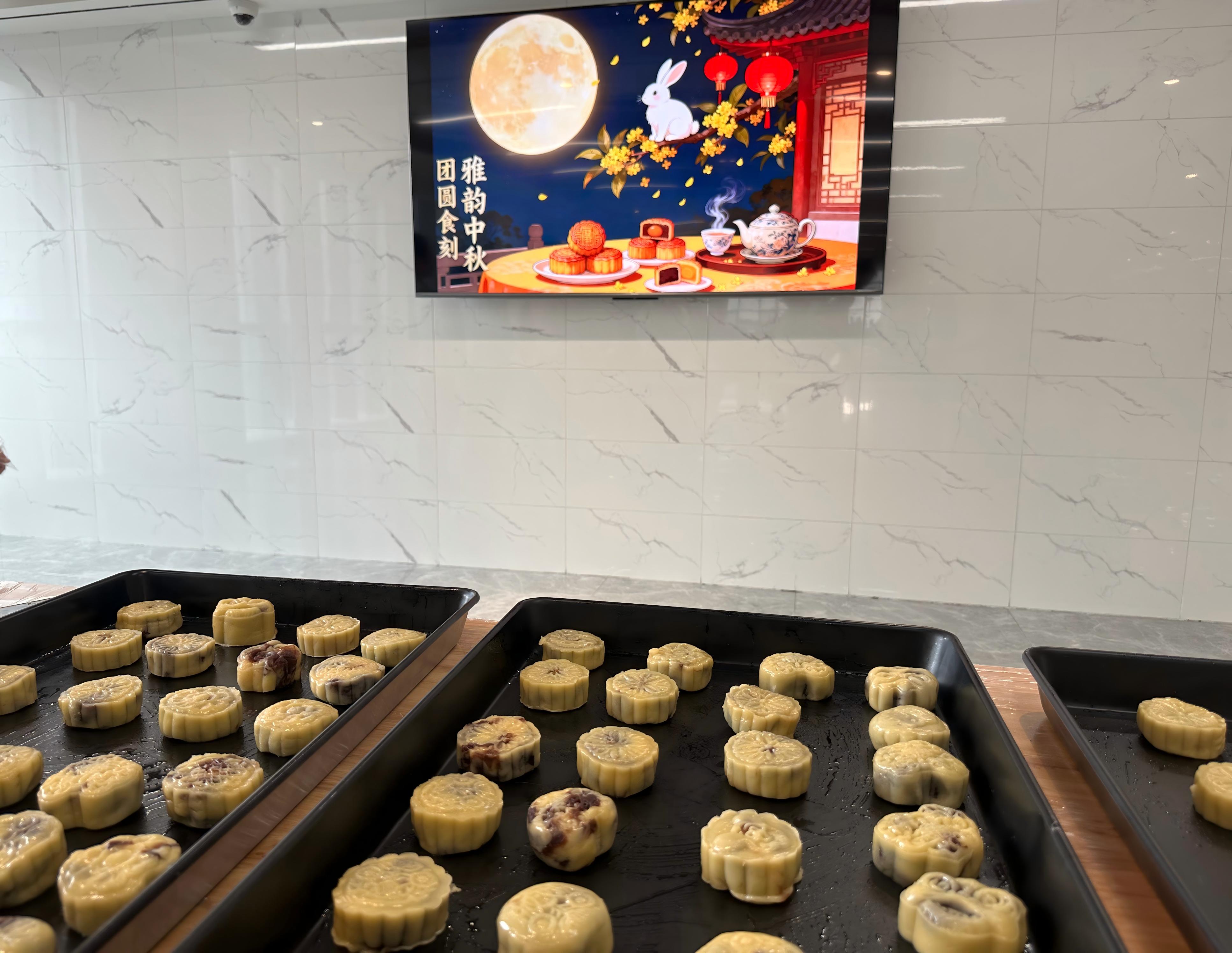 活動現(xiàn)場布置得溫馨雅致,面團、餡料、模具等材料早已備好,各處充滿了濃厚的節(jié)日氣息。在面點師傅的指導(dǎo)下,大家興致勃勃地投入到月餅制作中,揉搓面團、包入餡料、放入模具……同事們互相交流技巧,分享心得,一個個飽滿可愛的月餅在手中成型。